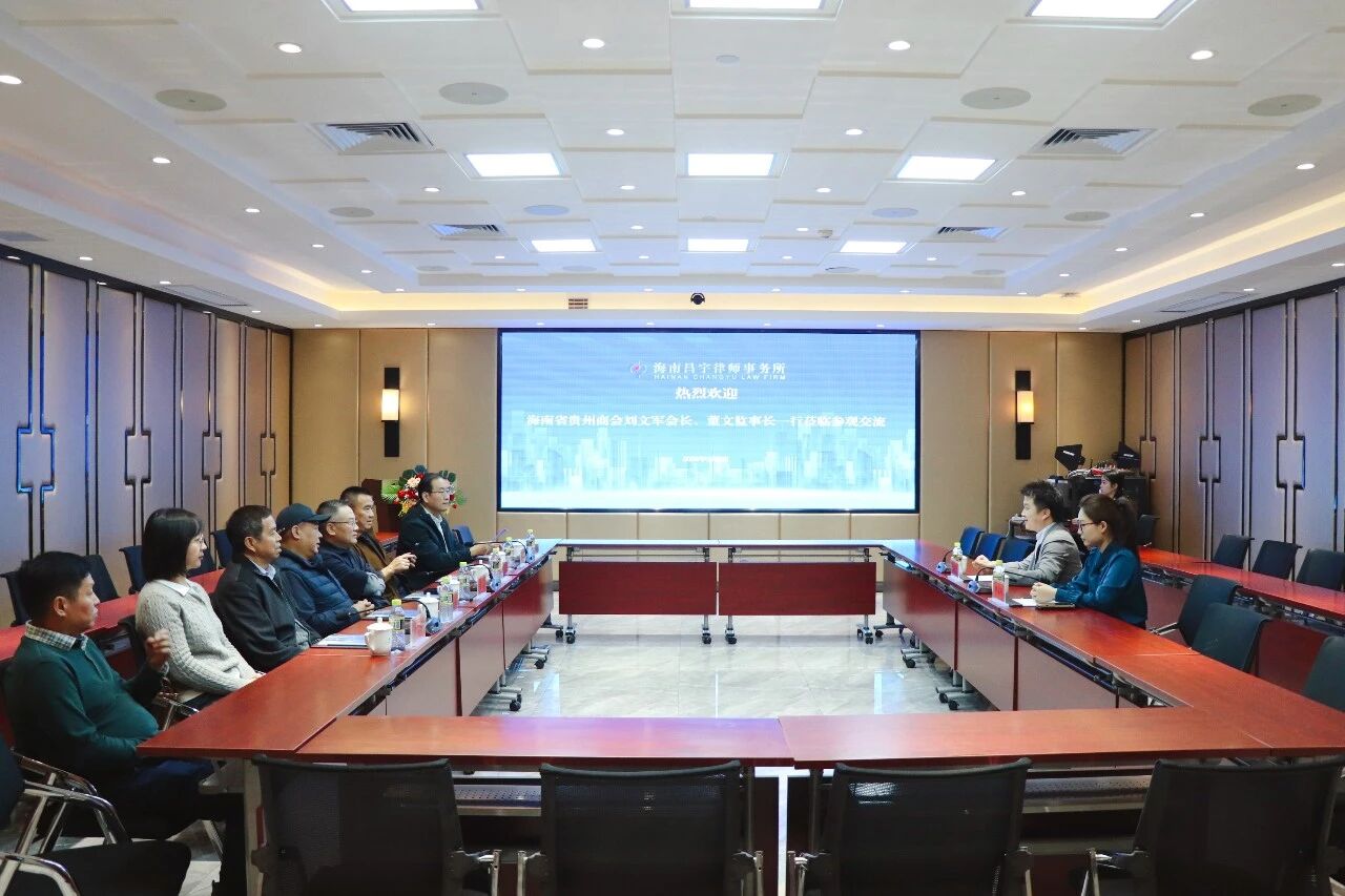 2026年2月2日,海南省贵州商会会长刘文军,带队走访商会两家副会长单位:海南君道基业科技有限公司和昌宇律师事务所,考察调研会员单位经营、发展状况。商会监事长董文,秘书长郑德刚,办公室主任刘春、副主任李丹等参加走访。商会副会长、海南君道基业科技有限公司总经理李彬,商会副会长、法律服务部主任、海南昌宇律师事务所执行主任陈吉波分别全程陪同参观座谈。