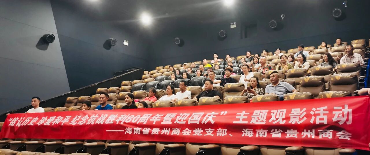 纪念抗战胜利80周年暨迎国庆”观影活动。商会会员、老乡,部分兄弟商协会会员等近80人在海口中视国际影城(东坡老码头店)集体观看电影《731》。