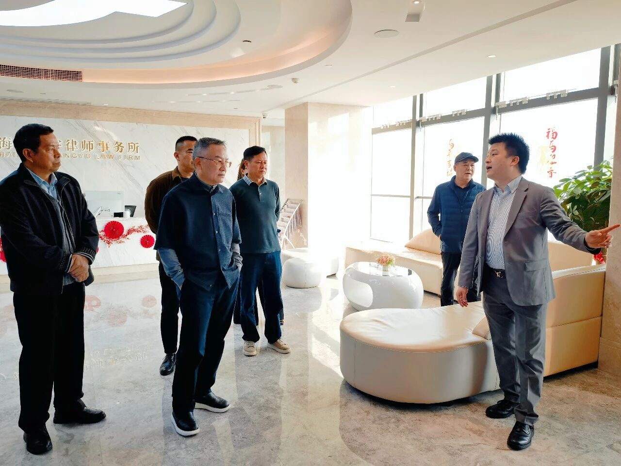 走访团队随后来到国瑞大厦B座38楼海南昌宇律师事务所考察交流。陈吉波带领大家参观贵宾厅、会议室、模拟法庭、律师办公室等律所环境,随后进行了座谈。座谈会上播放了反映昌宇律所成长历程和辉煌业绩的宣传片。陈吉波介绍说,昌宇律所成立于1996年,现有执业律师200多人,服务对象主要为大型国企、民企、政府部门、各主要金融机构等单位,连续多年荣膺“全国优秀律师事务所”、“全省最佳诚信律师事务所”等荣誉称号,综合实力近年来一直位列全省律所行业第一名。该所注重党建引领,党建促所建,律所党支部连续多年获评“先进基层党组织”。多年来,律所在驻村扶贫、法律援助等公益事业方面做了大量的工作。